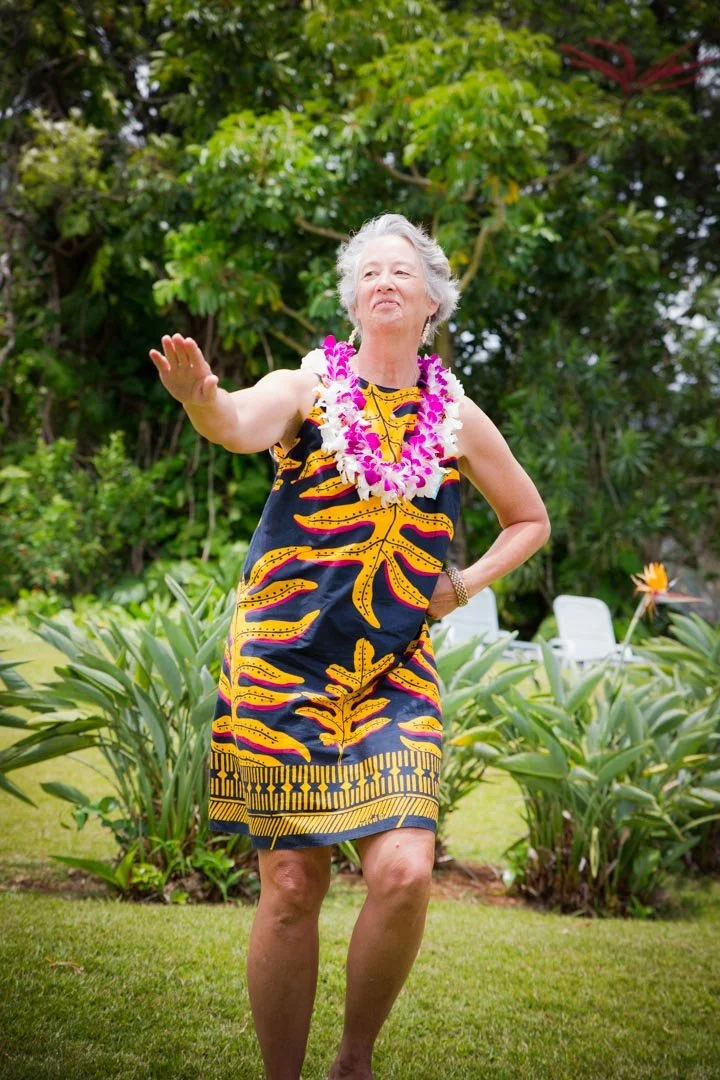 Cousin Kāheaikamelekai Roska dances “Pua Hone.” Son Rolf and I are watching, along with everyone else.