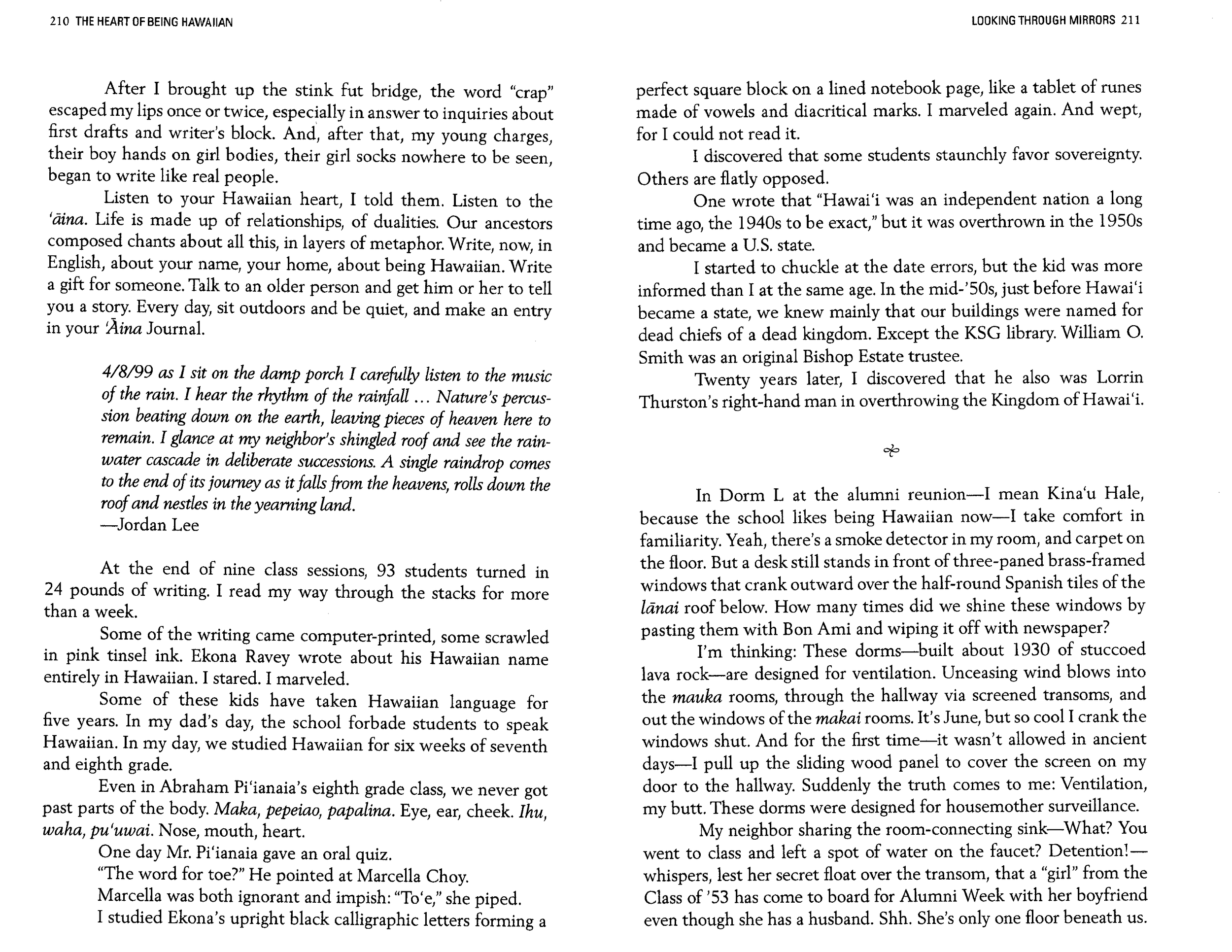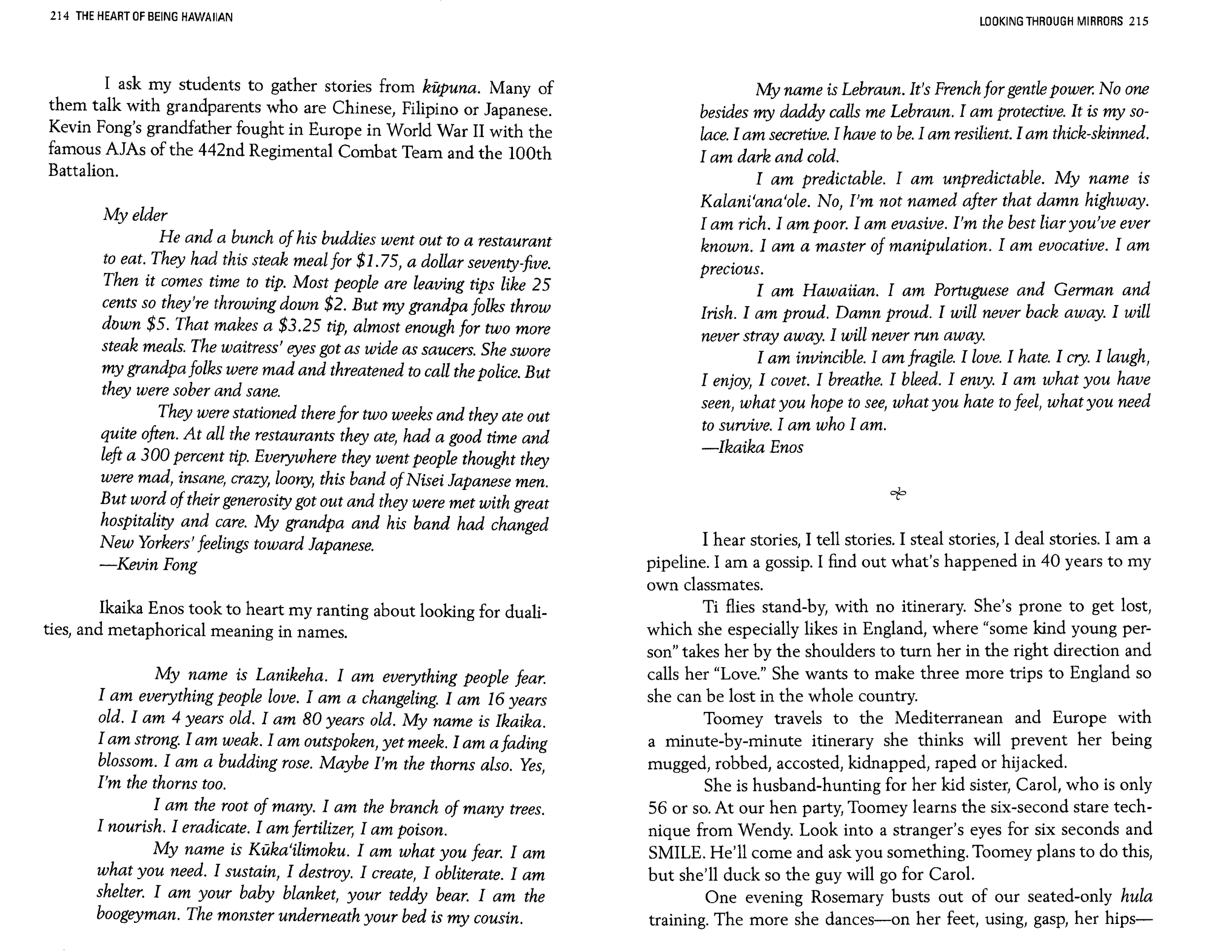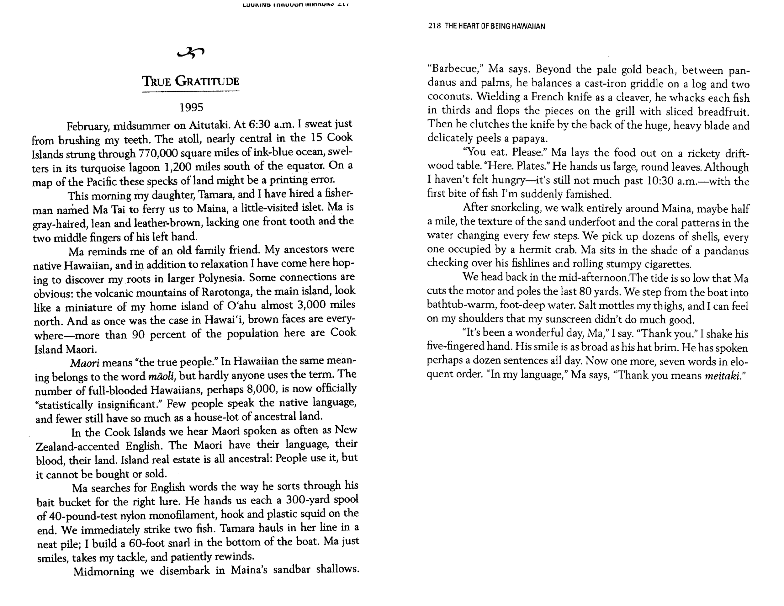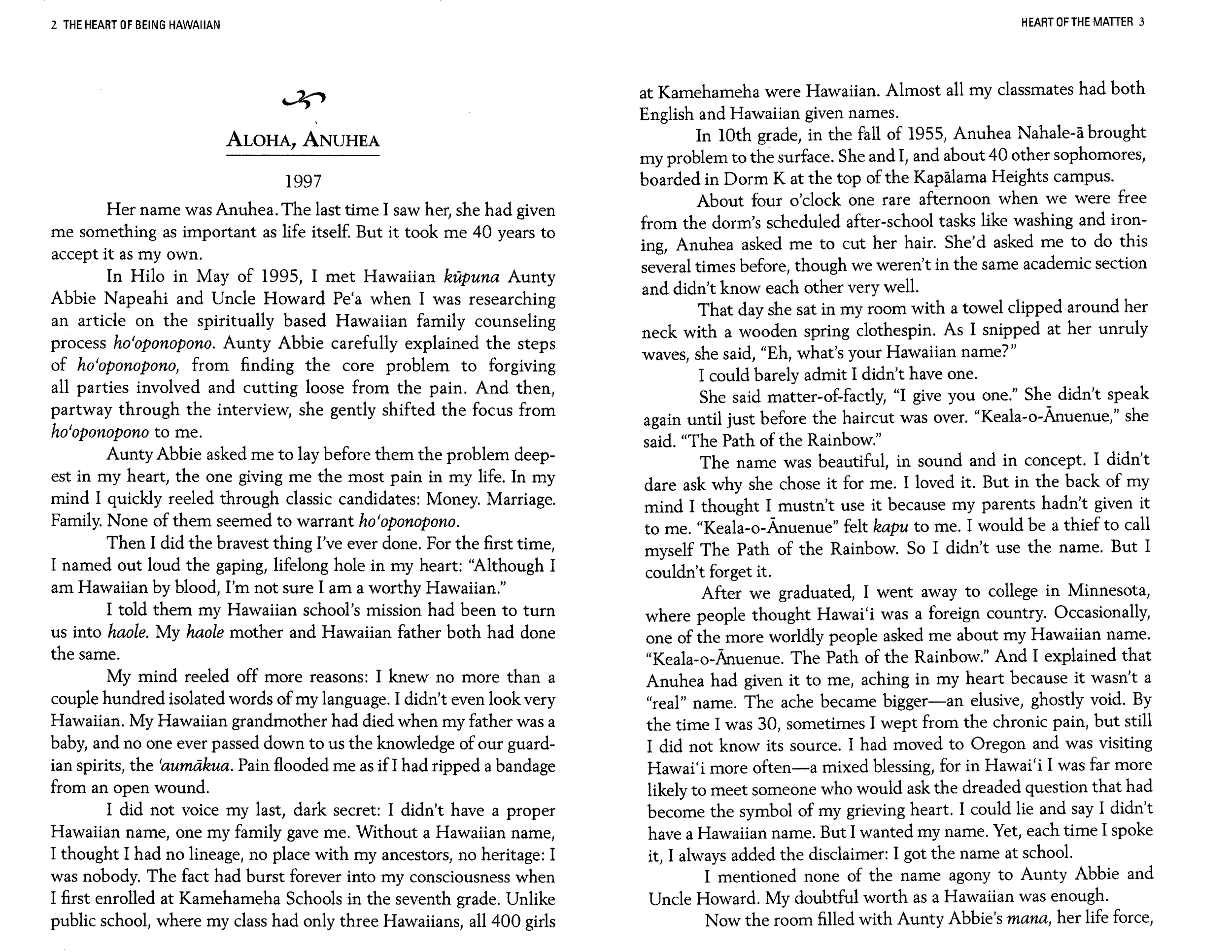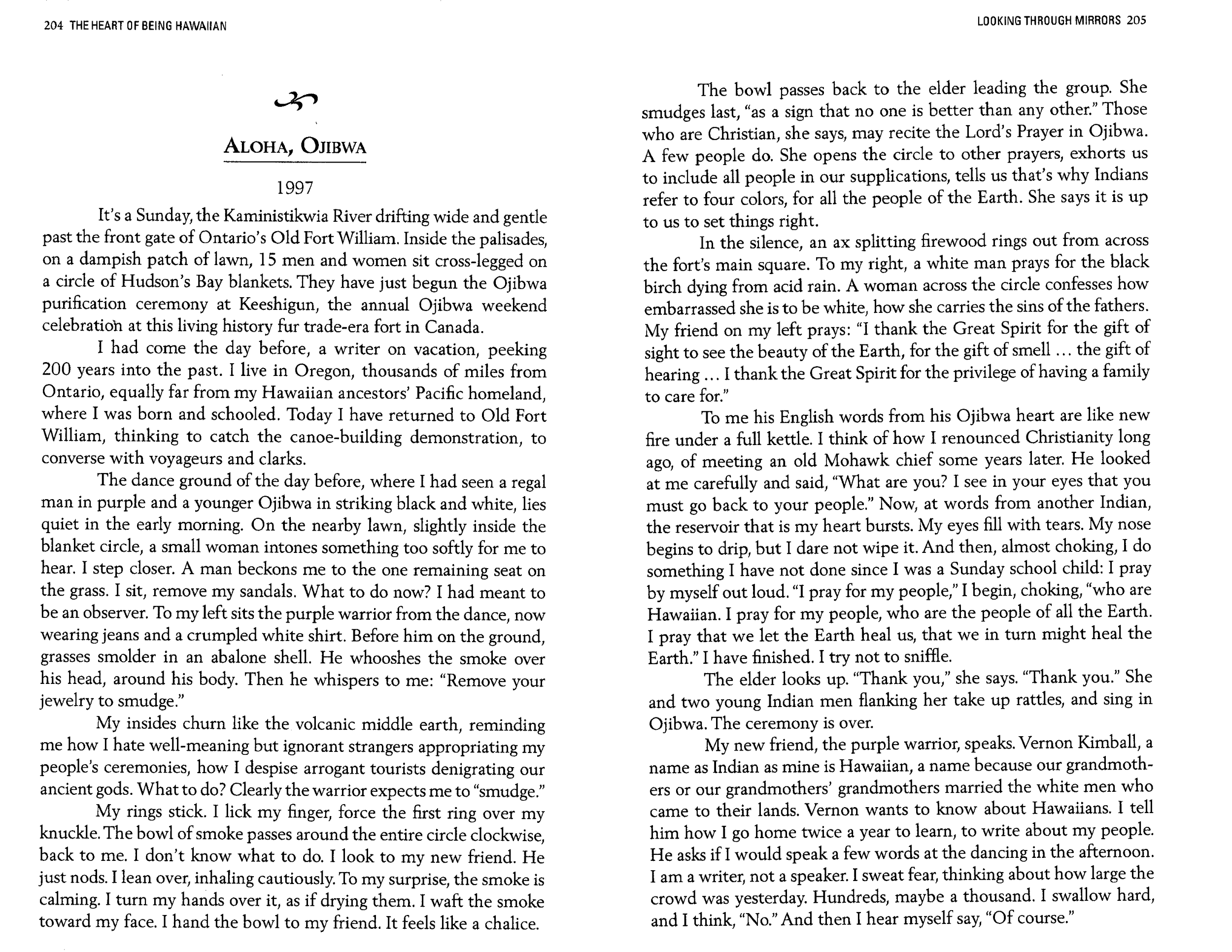 Aloha, Ojibwa (Honolulu Magazine 1997 & Gatherings Anthology 1995)