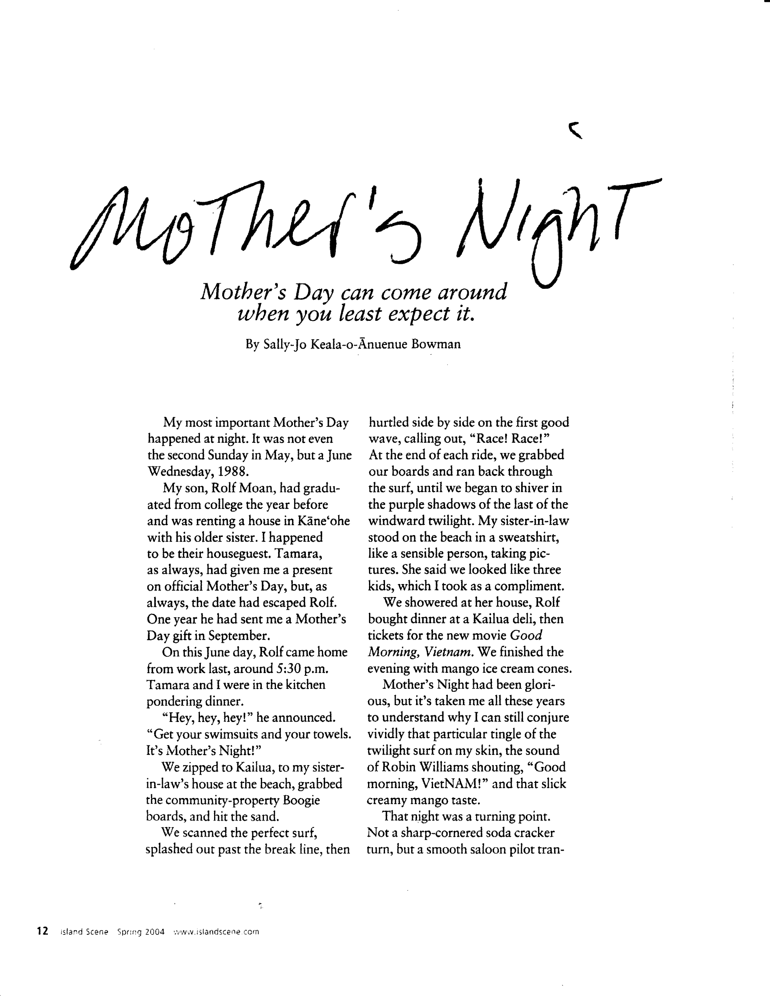 Mother’s Night (Island Scene Magazine 2004)