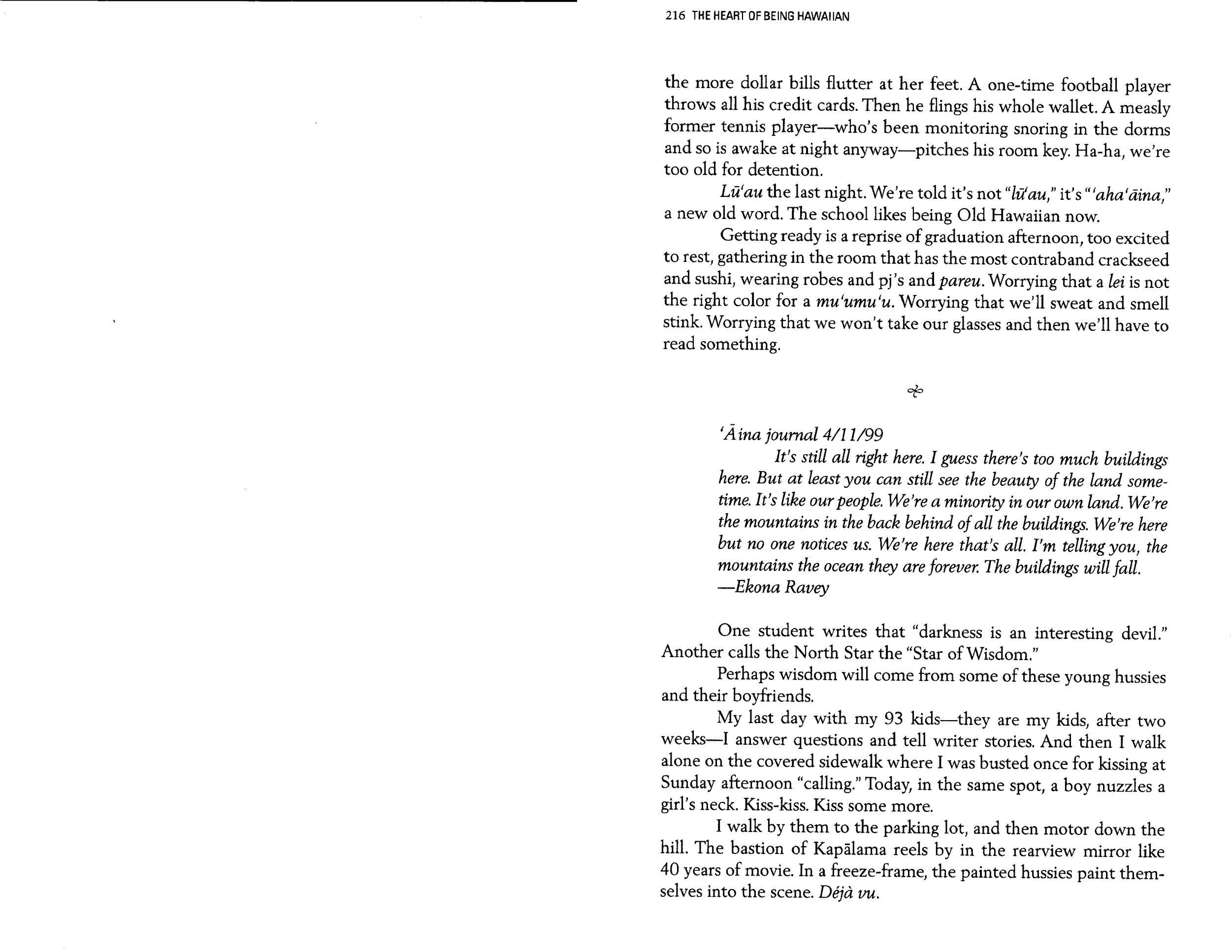 Kāhea, tenderly 20, was stunned by Aunty Betty’s finale, thinking that only 13-year-old boys use such language. She remained stunned for a decade, until she returned to Kohala with me.