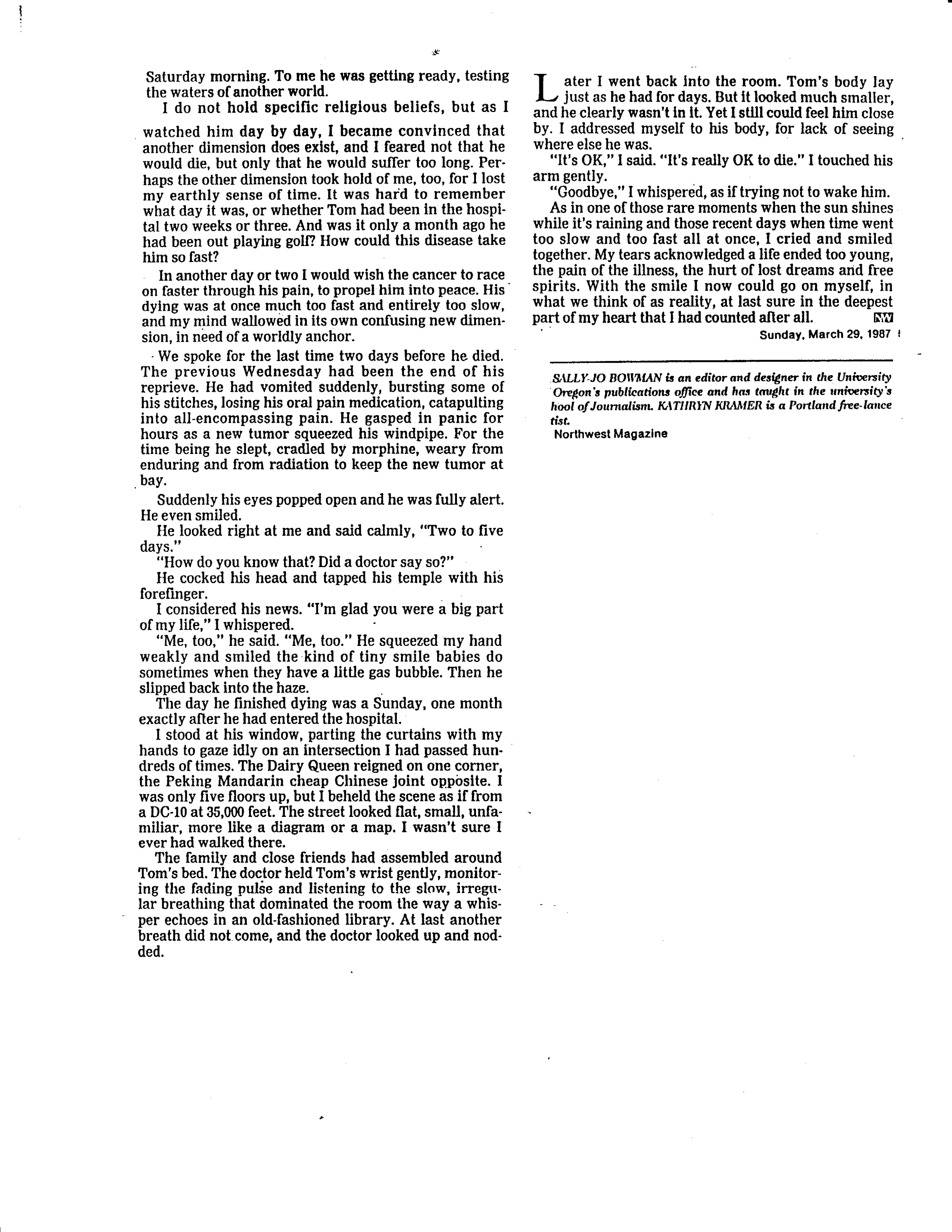 A Closing Conversation (Northwest Magazine 1987)